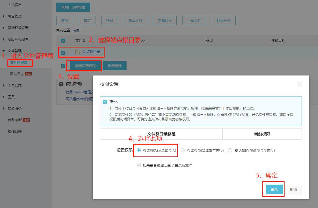 注意:不知道大家有沒有注意到,阿里云虛擬主機(jī)權(quán)限設(shè)置固定為3種,存在這樣一種限制:設(shè)置目錄為禁止寫入,就無法禁止腳本執(zhí)行;禁止腳本執(zhí)行,就必須是可讀可寫。導(dǎo)致存在嚴(yán)重的安全隱患(沒有辦法禁止App、Install、Public腳本執(zhí)行權(quán)限)。