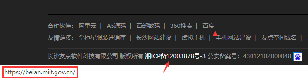 進(jìn)入首頁,鼠標(biāo)放在備案號(hào)上面,如果下面出來工信部的網(wǎng)址:https://beian.miit.gov.cn ,說明添加成功