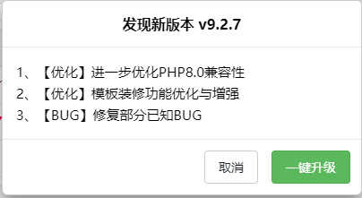 YouDianCMS搭配PHP8.0之后,效率更高,安全性更高!大家可以在后臺(tái)直接升級(jí)!