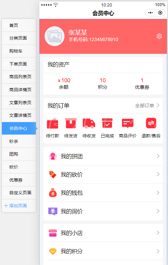 不僅首頁,列表頁,詳情頁,會員中心等頁面都可以進行DIY裝修。