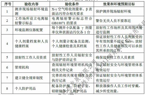 ⑴按照《油(氣)田非密封放射源測井衛(wèi)生防護標準》GB118-2002相關(guān)要求,為放射性工作人員配備足夠的輻射防護用品,放射性測井過程中必須穿戴符合要求的專用工作服、帽子、口罩和手套等個人防護用品。按要求佩戴個人劑量計,個人劑量計必須按期監(jiān)測,每個從事放射性的測井分隊配備1臺表面沾污儀和1臺X-γ劑量率儀,嚴格執(zhí)行監(jiān)測計劃。