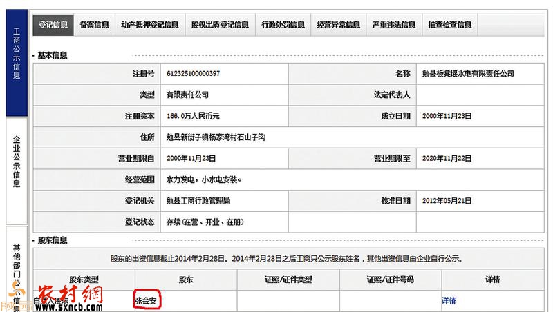 記者注意到,勉縣板凳堰水電有限責任公司的工商登記中張會安仍然列在自然人股東第一位,其工商登記中沒有看到股權變更登記的有關情況。