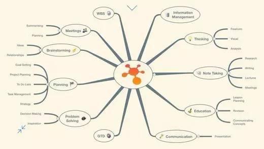 思維導圖的本質邏輯是分類,導圖新子集分類的建立過程也像大腦的記憶過程一樣,不斷以一個個點為中心進行發散,以至無窮。