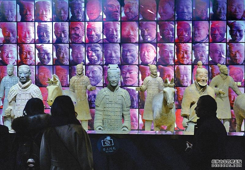 1月9日,觀眾在陜西歷史博物館“陜西周秦漢唐文物精華展”上參觀秦始皇兵馬俑。當日,陜西歷史博物館推出“三秦華章 光耀四方——陜西周秦漢唐文物精華展”。該展覽以周秦漢唐四個時代為主題,從陜西歷史博物館171萬件藏品中遴選出600多件精品文物向社會公眾展示。陜西歷史博物館2018年1月7日關閉基本陳列“陜西古代文明”,進行全面提升改造,2018年5月18日將重新面向公眾開放。基本陳列改造期間,“陜西周秦漢唐文物精華展”將用于保證游客的正常參觀。