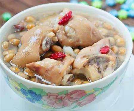 豬腳 (1000克)、黃豆 (400克)、調料清水 (適量、)油 (適量)、鹽 (適量)。