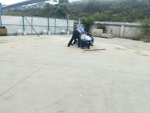 醫療救助組身穿防護服抬著擔架,要在最短的時間將受傷人員送上救護車,既要搶時間又不能使擔架過于顛簸,各各注意力集中,迅速完成了送救任務。