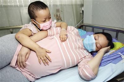懷胎八月,尹義麗的身子沉了,行動也越來越吃力。但為了給患白血病的女兒多些陪伴和安慰,她至今仍挺著大肚子堅守在病床前。