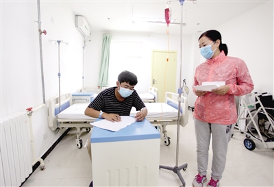 “在病房里考試?”病房外站有病人,想瞧瞧醫(yī)院里的考試是啥樣子。得知這里有學(xué)生要考試,護(hù)士熱心幫忙,專門為特殊考試整理出來空病房,作為這次考試的愛心考場(chǎng)。
