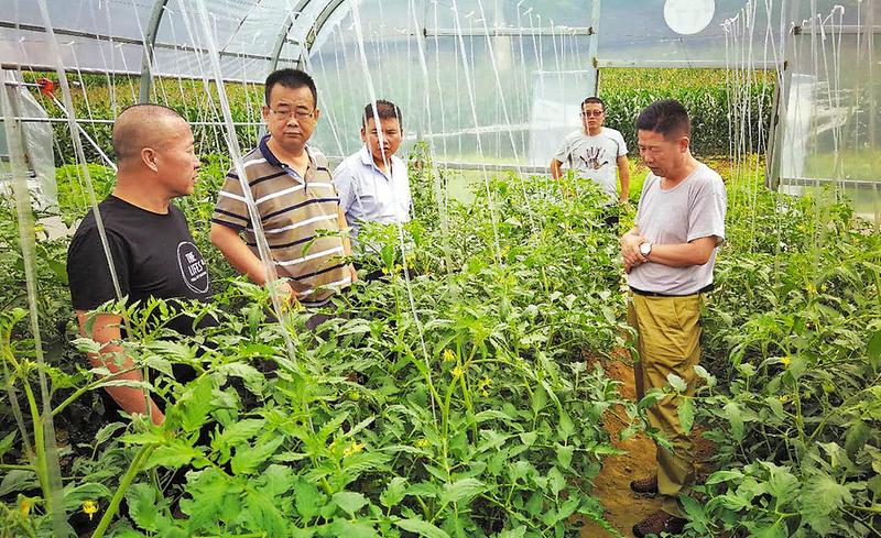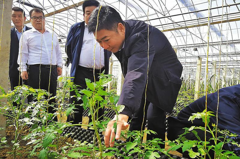 華州區委書記霍文軍在富華農邦扶貧產業園查看西紅柿長勢